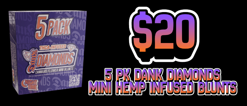 $20 5PK DANK DIAMONDS MINI HEMP INFUSED BLUNTS